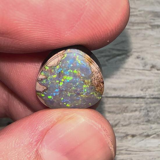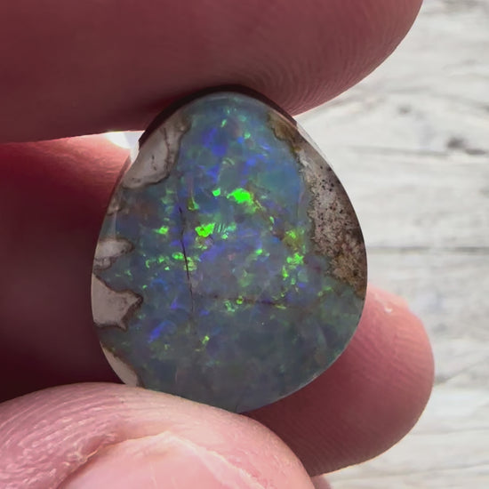 Assembled with only the highest quality components this Spencer Opal Triplet is large and in charge! Big color play that forms a river down the middle of matrix. This is a high grade high fire Spencer Opal with neon purple/blue with streaks of green that race across it. It’s insane in person and definitely a collector piece!