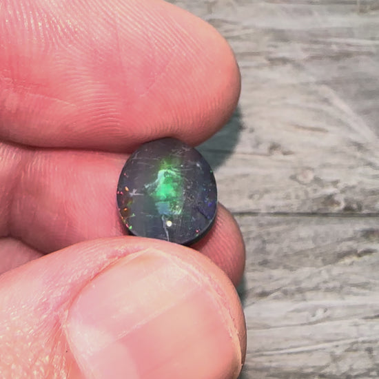Assembled with only the highest quality components this Spencer Opal Triplet has a very bright racing stripe right down the middle! Flashes of intense orange down the middle hugged by smaller flashes of blues and greens on either side.